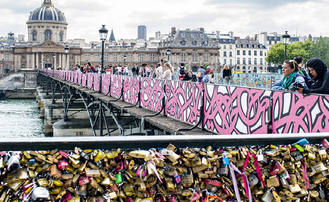 Người dân Paris thích đi bộ trên cầu và chiêm ngưỡng những cảnh quan xung quanh. Nhưng chắc chắc bạn sẽ không nhìn thấy họ gắn những chiếc ổ khóa tình yêu lên cầu.