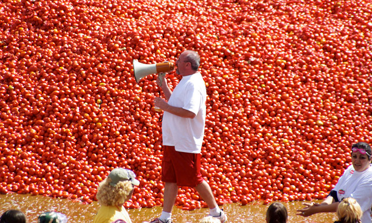 Lễ hội ném cà chua La Tomatina – Đây thực sự là một lễ hội yêu thích của tôi, trong khoảng một giờ, mọi người ném cà chua vào nhau và đường phố trở nên ngập tràn trong nước ép cà chua.