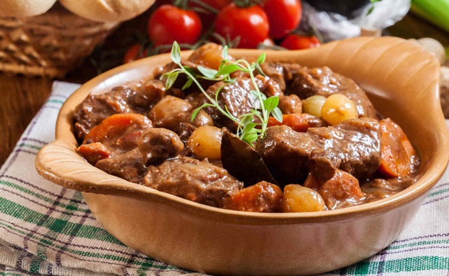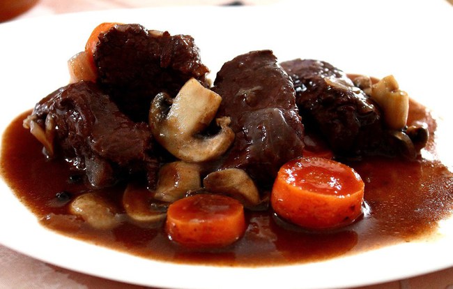 Món Boeuf bourguignon: Lại là một món ăn truyền thống khác của Pháp được cả thế giới biết tới. Có xuất xứ từ vùng Burgundy, món ăn thịnh soạn này là sự kết hợp của thịt bò và rượu vang (đương nhiên rồi!).