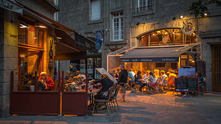 Café Cancalais, Quán bar nơi thật tuyệt cú mèo để ngắm thuỷ triều lên khi hoàng hôn buông xuống. Có thể ngồi ngay ngoài hiên hay chọn một bàn ấm cúng hơn bên cửa sổ tầng hai.