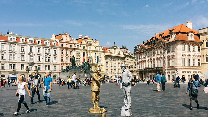 Quảng trường Old Town đầy sôi động luôn đầy ắp nghệ nhân biểu diễn trên đường phố, những nghệ sĩ cùng những hướng dẫn viên du lịch.