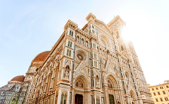Được biết đến với tên il Duomo , những mái vòm màu đỏ mang tính biểu tượng của nhà thờ Gothic mang lại bức tranh toàn cảnh rộng khắp giữa những ngọn đồi Tuscan.