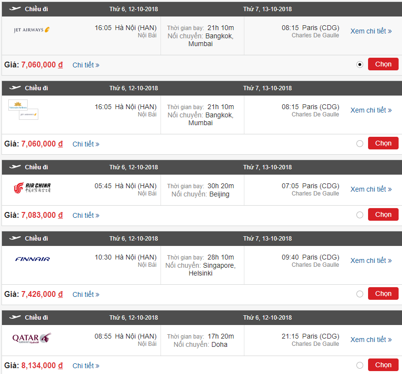 Trong đó chỉ có riêng Paris là có chặng bay thẳng, còn các chuyến bay khác sẽ có từ 1 tới 2 điểm dừng.