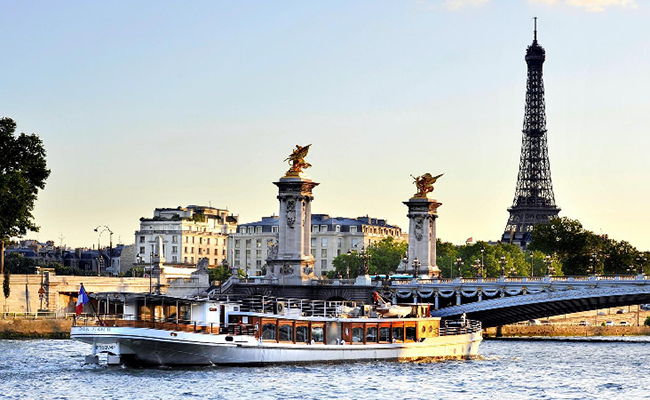 Ngoài ra một phương tiện rất thú vị nữa đó là đi thuyền dọc sông Seine, ngắm nhìn thành phố và ăn tối ngay trên thuyền (đồ ăn phục vụ đầy đủ), đó sẽ là một trải nghiệm không thể nào quên.