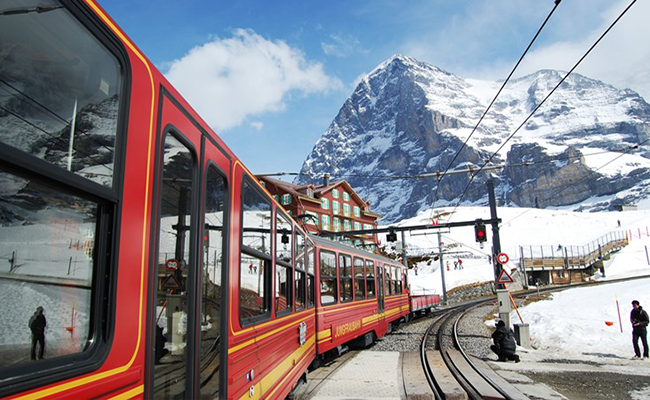 Từ thành phố Interlaken, Bạn bắt tàu lửa tại ga Ost để đến vùng Jungfraujoch. Từ đây, tôi sang tàu của hãng Bernese Oberland để lên đỉnh Jungfraujoch thuộc dãy núi Apls huyền thoại, nơi đặt trạm hỏa xa cao nhất châu Âu và là điểm lý tưởng để trượt tuyết.