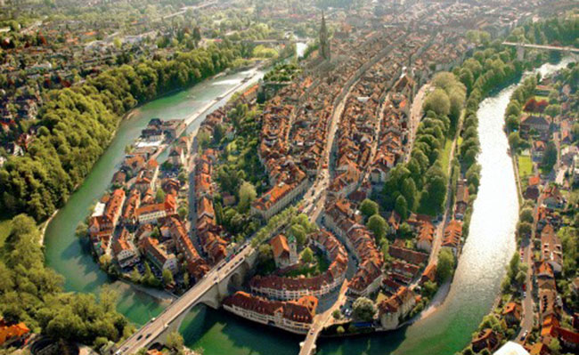 Thành phố xinh đẹp với sự bình yên từ những ngôi nhà mái vòm bên sườn núi. Đặc biệt, Bern tọa lạc ở một bán đảo trên sông Aare, mang đến cho thành phố một cảm giác thật yên ả. Những danh thắng bạn không thể bỏ qua khi ghé thăm thủ đô của Thụy Sĩ chính là khu phố cổ – một di sản thế giới của UNESCO; nhà thờ Berner Münster – nhà thờ Trung Cổ lớn nhất Thụy Sĩ; khu vườn Rosengarten; tháp đồng hồ Zytglogge hay tòa nhà Quốc Hội Bundeshaus …
