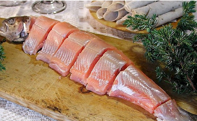 Nghe cái tên gọi thì món ăn này có vẻ là khó nuốt. Được làm bằng những con cá hồi tươi ngon hoặc đã được muối, sau đó lên men trong 2-3 tháng trong dịch của cá tiết ra.