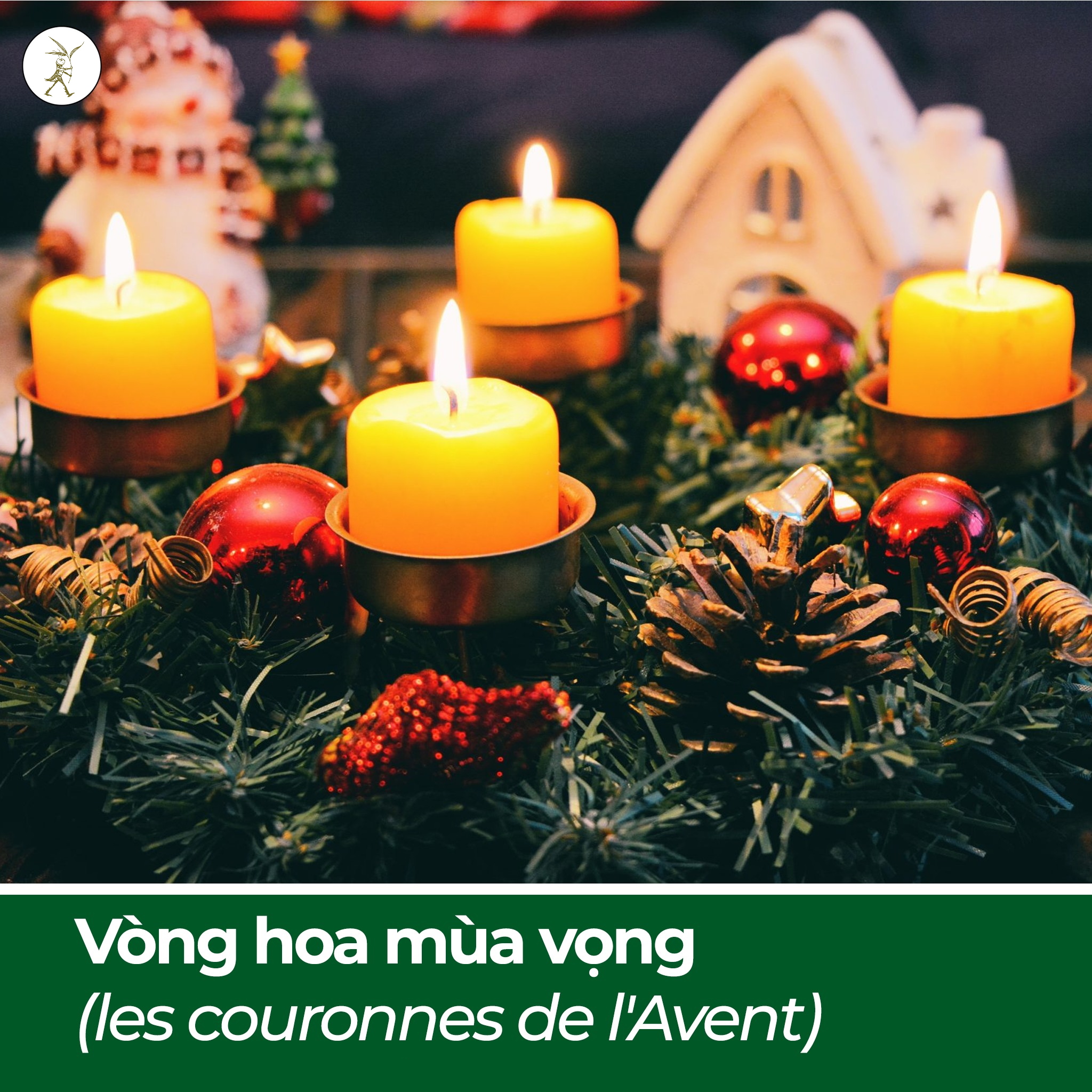 Các vòng hoa Mùa Vọng gồm linh sam và cành cây thông. Theo truyền thống, nó được thắt nút bằng những chiếc nơ màu đỏ xinh đẹp và được trang trí bằng những quả thông hoặc linh sam. Bốn ngọn nến trang trí công phu trên đỉnh của vòng hoa Mùa Vọng tượng trưng cho bốn ngày Chủ nhật trước Giáng sinh và chúng được thắp lần lượt vào mỗi Chủ nhật trước lễ Giáng sinh.