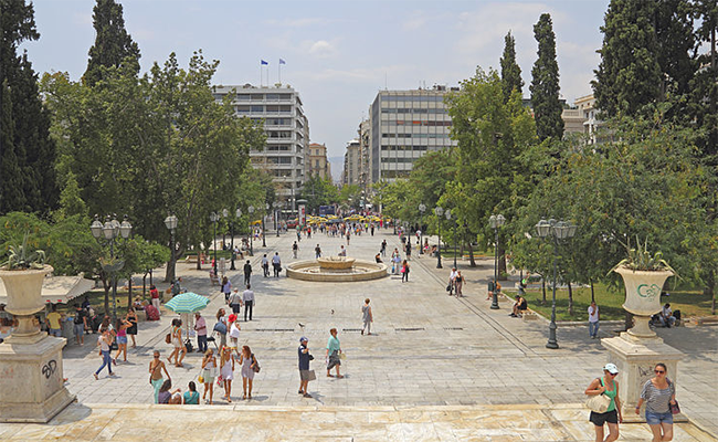 Sự rộng lớn của quảng trường Syntagma là nơi thích hợp nhất cho khách du lịch bởi bóng mát của những hàng cây cao cùng các đài phun nước quanh quảng trường.