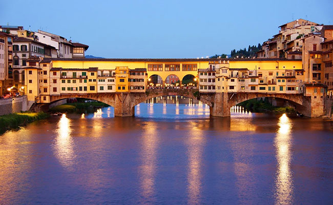Bạn có thể đến thăm sông Arno và cây cầu mang tính biểu tượng Pont Vecchio. Trong số 6 cây cầu mang phong cách cổ điển bắc qua sông Arno, chỉ có Vecchio còn lưu giữ lại được những nét cổ kính và trầm mặc của thời gian. Đặc biệt là nó còn giữ lại được kiến trúc của những cửa hàng nhỏ trên cầu, có cảm giác giống như một khu chợ, điều thường thấy ở những cây cầu thời xưa.