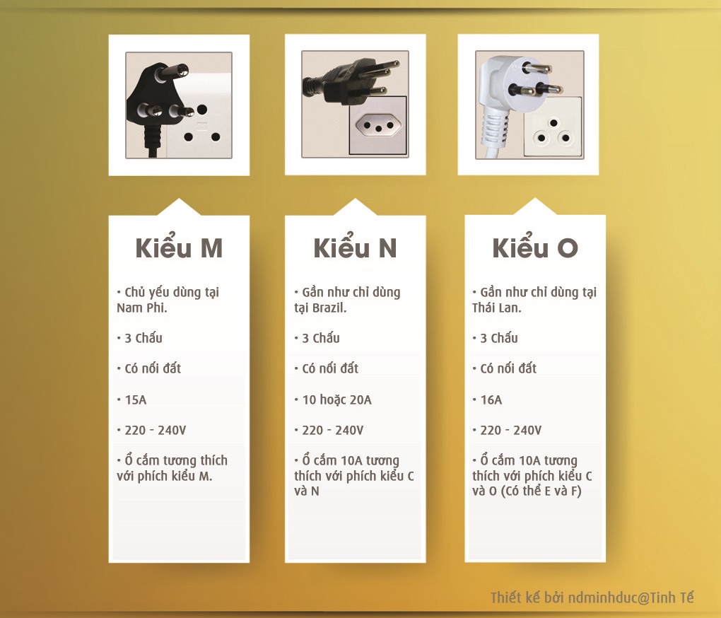 Dưới đây là một vài loại ổ cắm phổ biến tại một số quốc gia trên thế giới, trong đó có Việt Nam.
