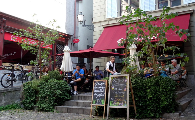 Vào buổi đêm, khu phố cổ càng trở nên náo nhiệt với ánh đèn lấp lánh, lộng lẫy và xa hoa. Khách du lịch Châu Âu có thể tụ tập tại các quán bar, nhà hàng và câu lạc bộ đêm nằm rải rác xung quanh Niederdorfstrasse và Limmatquai.