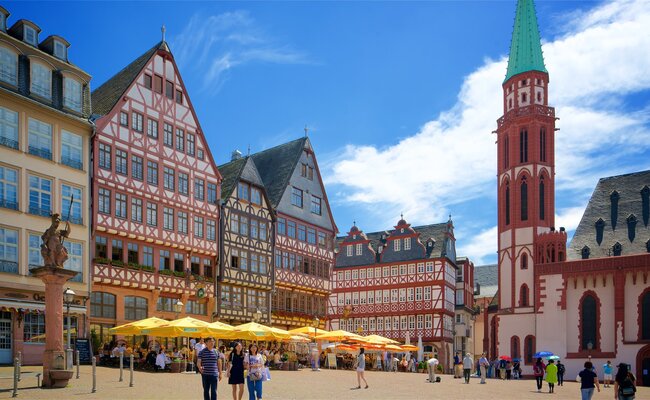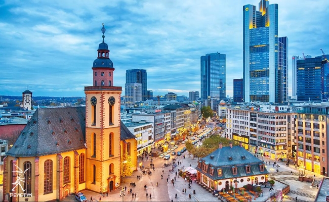 Đoàn khởi hành đến Frankfurt, trung tâm thương mại & tài chính lớn nhất của nước Đức, là nơi đặt trụ sở ngân hàng trung ương Châu Âu và cũng là nơi sinh ra của đại thi hào Đức Johann Wolfgang von Goethe. Đoàn thăm quan: phố cổ, quảng trường Römerberg – một trong những khu đi bộ đông đúc và nhộn nhịp nhất của thành phố; tòa nhà thị chính cổ Römer; đài phun nước Justice; cầu sắt Eiserner Steg; nhà thờ Frankfurt Cathedral, nhà của Goethe, biểu tượng đồng tiền chung Châu Âu.