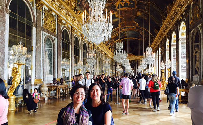 Đoàn khởi hành đi thăm Cung điện Versailles – là biểu tượng của quyền lực tối thượng của các triều đại phong kiến Pháp với một diện tích và các công trình kiến trúc cực kì đồ sộ và lộng lẫy. Với một cung điện rộng 67.000 mét vuông gồm trên 2000 phòng, một công viên có diện tích 815 héc ta, Versailles là một trong các lâu đài đẹp nhất và lớn nhất châu Âu cũng như trên thế giới. Năm 1979, lâu đài Versailles đã được UNESCO đưa vào danh sách Di sản thế giới.