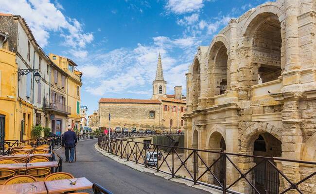 Đoàn khởi hành đến thị trấn Arles, nơi gắn liền với danh họa Vincent Van Gogh và hơn 200 tác phẩm sơn dầu được ông vẽ, chỉ trong 1 năm ông sống tại đây. Đây là năm ông vẽ hiệu quả nhất trong suốt cuộc đời của mình. The Langlois Bridge at Arles và The Café Terrace on the Place du Forum là 2 tác phẩm nổi tiếng thế giới được ông vẽ tại thị trấn này. Một số tàn tích có từ thời La Mã cũng là điểm nhấn của Arles như: đấu trường Arles Amphitheatre, nhà hát Roman Theatre of Arles.