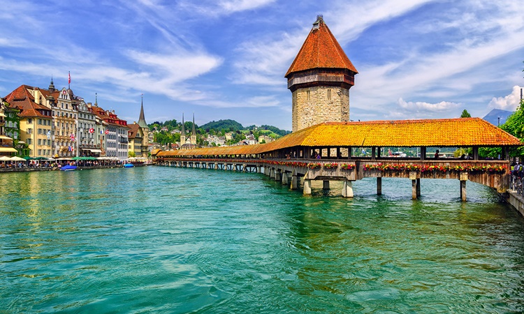 Đoàn khởi hành thăm Cầu gỗ Chapel và hồ Lucerne: được thiết kế và xây dựng vào năm 1333 nhằm bảo vệ thành phố Lucerne chống lại các cuộc tấn công. Cây cầu gỗ Chapel được xem như là biểu tượng của thành phố Lucerne và thu hút hàng trăm nghìn lượt du khách đến tham quan mỗi năm. Đoàn tranh thủ thời gian mua sắm đồng hồ Thụy Sỹ với các thương hiệu nổi tiếng trên thế giới trước khi khởi hành đến tới với vùng Engelberg và đỉnh núi tuyết Titlis. Tại đây, quý khách sẽ được chiêm ngưỡng cảnh quan thiên nhiên hùng vĩ, xanh rì kéo dài đến tận chân trời, những rừng thông đặc thù của vùng núi Titlis, những con suối trong veo và những gềnh thác trắng xóa, trải nghiệm tuyết trắng muốt & mềm xốp trên tỉnh Titlis…