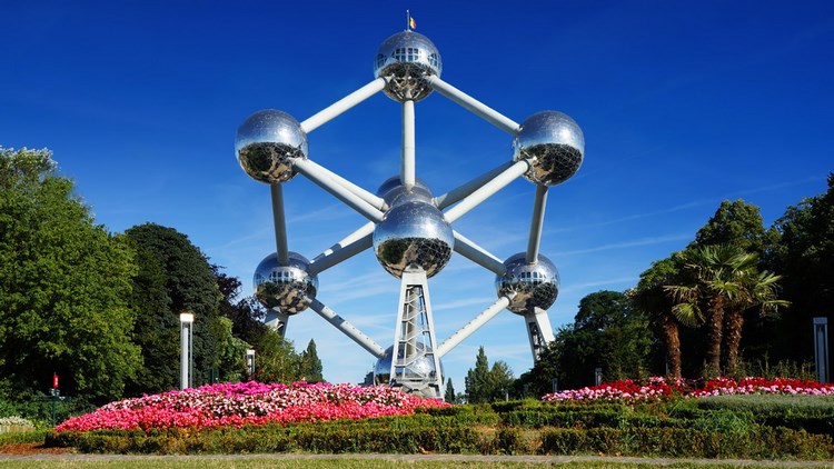 • Mô hình Atomium (chụp hình bên ngoài): có độ cao 102m với tổng trọng lượng khoảng 2.400 tấn ới 9 quả cầu nguyên tử sắt (kích thước lớn hơn thực tế tới 165 tỷ lần) được coi là biểu tượng mới của nước Bỉ dù mới ra đời năm 1958 với mục đích sẽ là biểu tượng của thời đại nguyên tử và sử dụng nguyên tử với mục đích vì hòa bình.