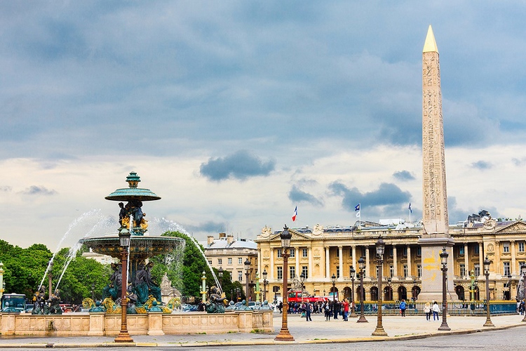 - Quảng trường Concorde một trong những quảng trường nổi tiếng với hai đài phun nước được chạm trổ tinh xảo được gắn tượng hải thần & thủy thần cùng với cột tháp Obélisque bốn góc tạc cổ ngữ mạ vàng do phó vương Ai Cập Mohamed Ali dành tặng nước Pháp năm 1830