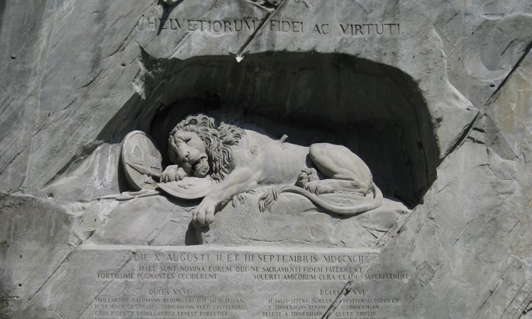 Ngay dưới tượng đài bạn có thể nhìn thấy danh sách những người lính đã hy sinh trong cuộc thảm sát và những người may mắn còn sống sót. Dòng chữ “Helvetiorum Fidei ac Virtuti – Với sự trung thành và dũng cảm của Thụy Sỹ” được khắc nổi bật trên tảng đá nhằm tôn vinh sự hy sinh anh hùng này.